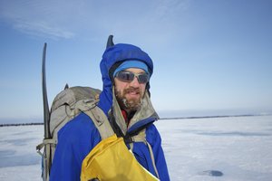 — Caleb soaking up the sun on Lake Iliamna near Lower Talarik Creek