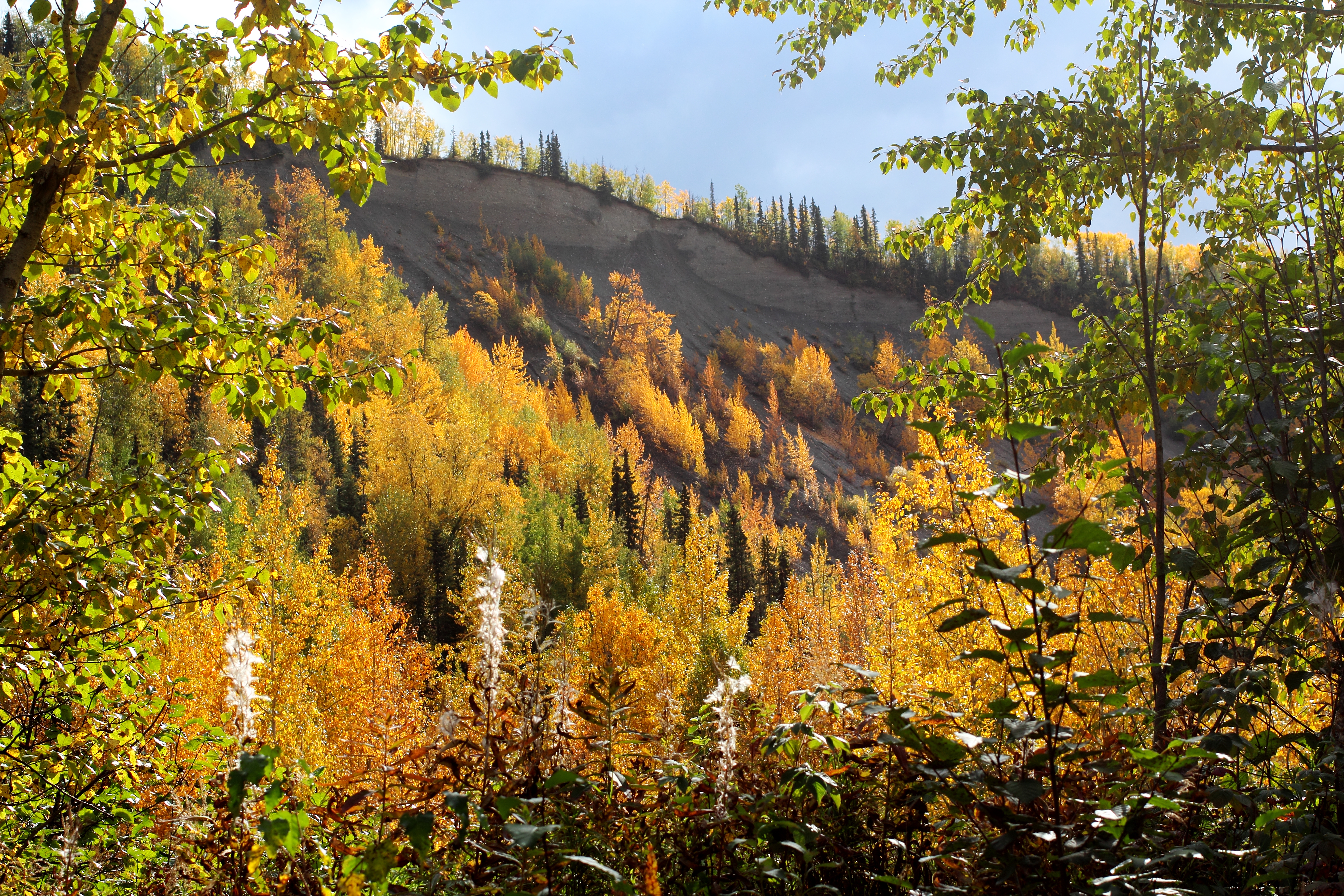 — Fall colors decorate the slopes above the Kings River, a tributary of the Matanuska.