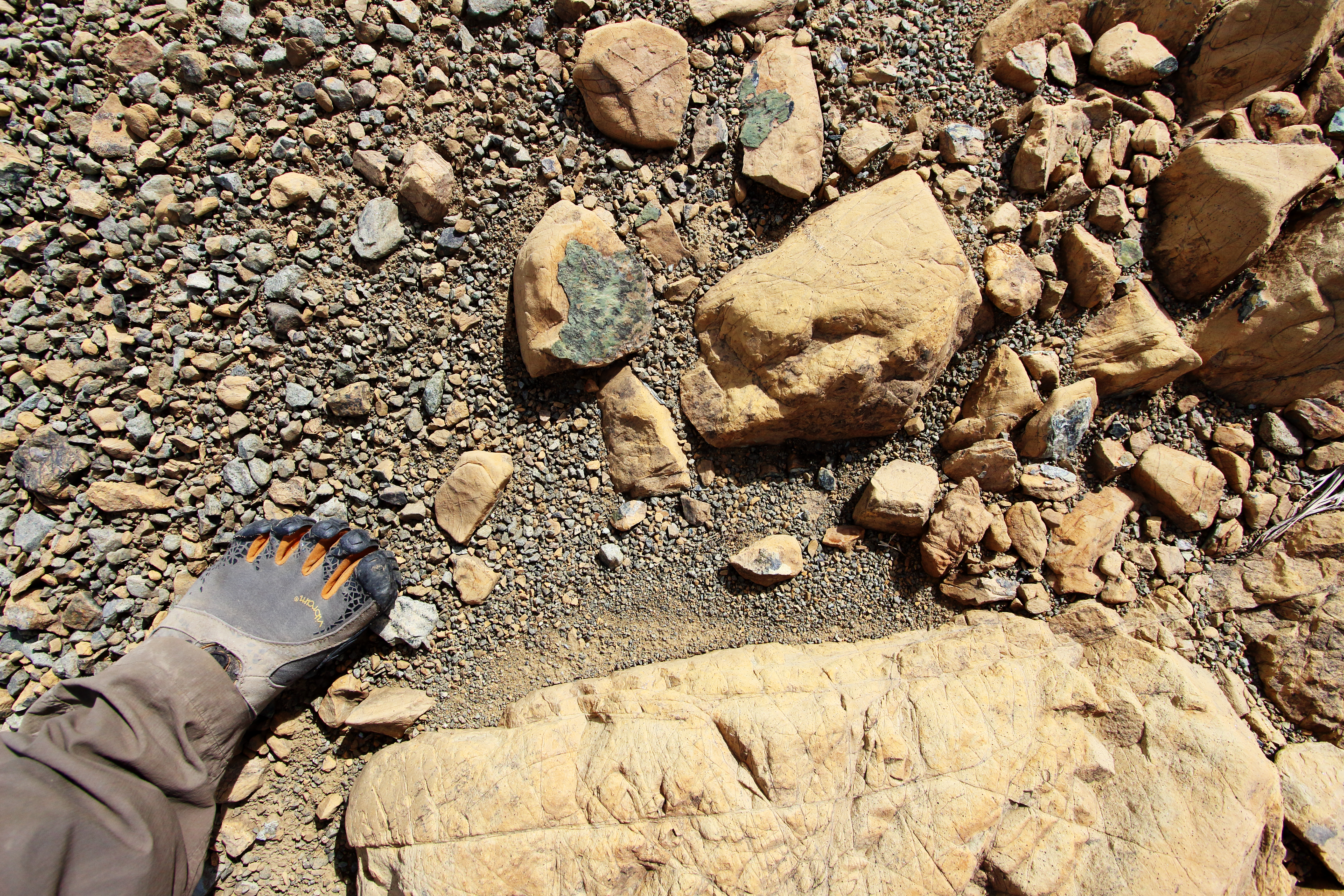 Sorted pebbles near a boulder