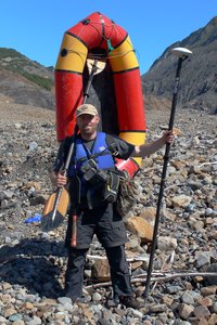 — Andrew Mattox surveyed tsunami runup in some difficult to reach places - clambering through alder and paddling Taan Fjord with high-tech GPS instruments in-hand.