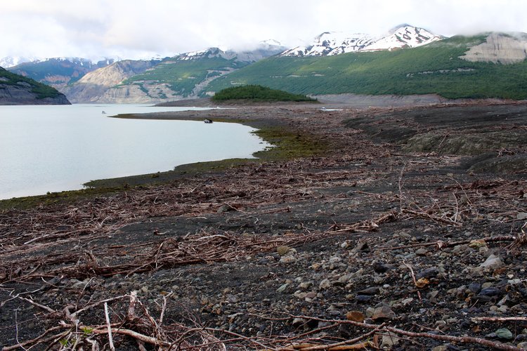 — About halfway down the fjord, 10 kilometers from the tsunami source, the tsunami was still stripping the land bare.
