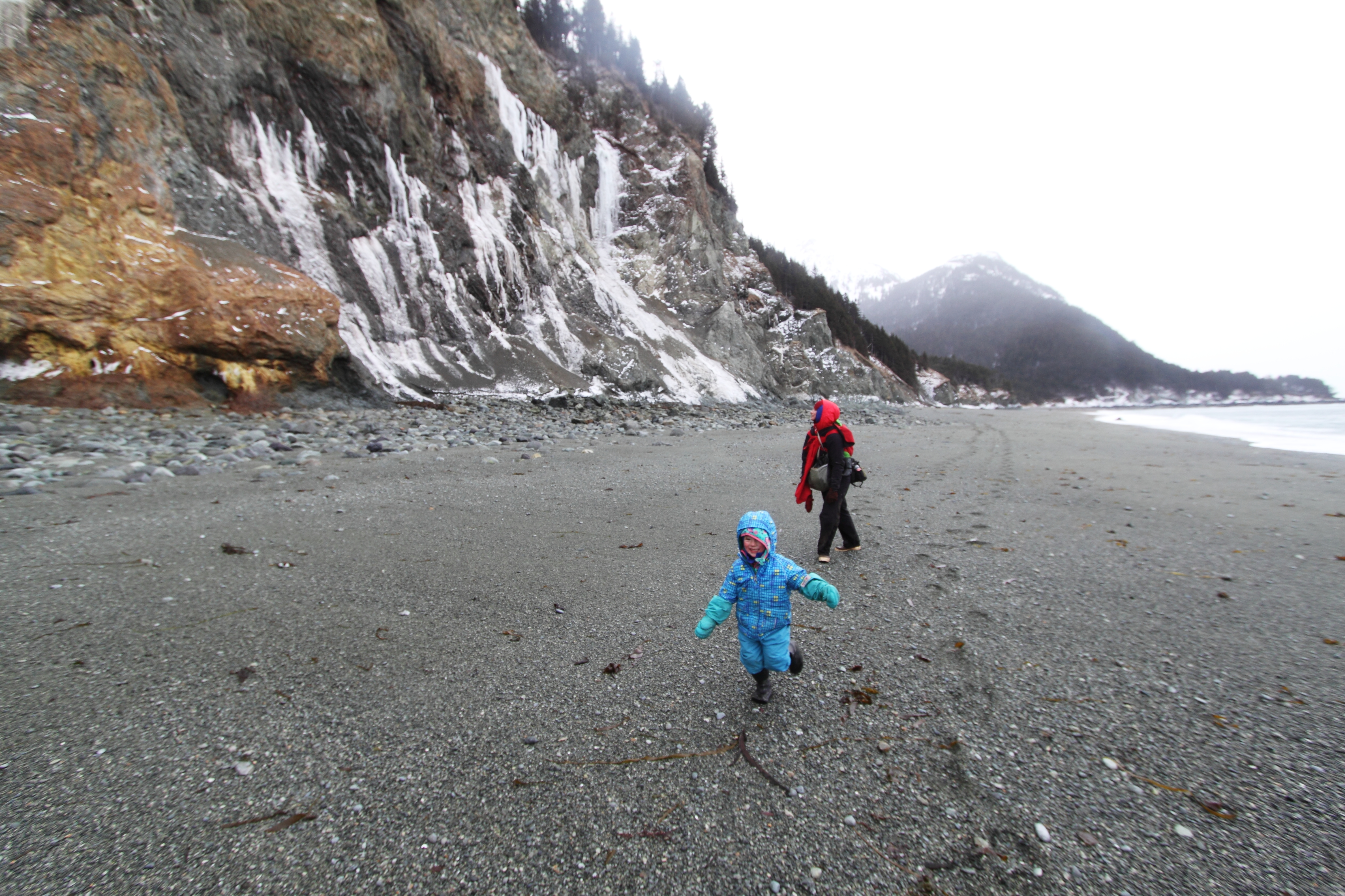Katmai runs ahead with great enthusiasm, at the beginning of our journey around Cook Inlet
