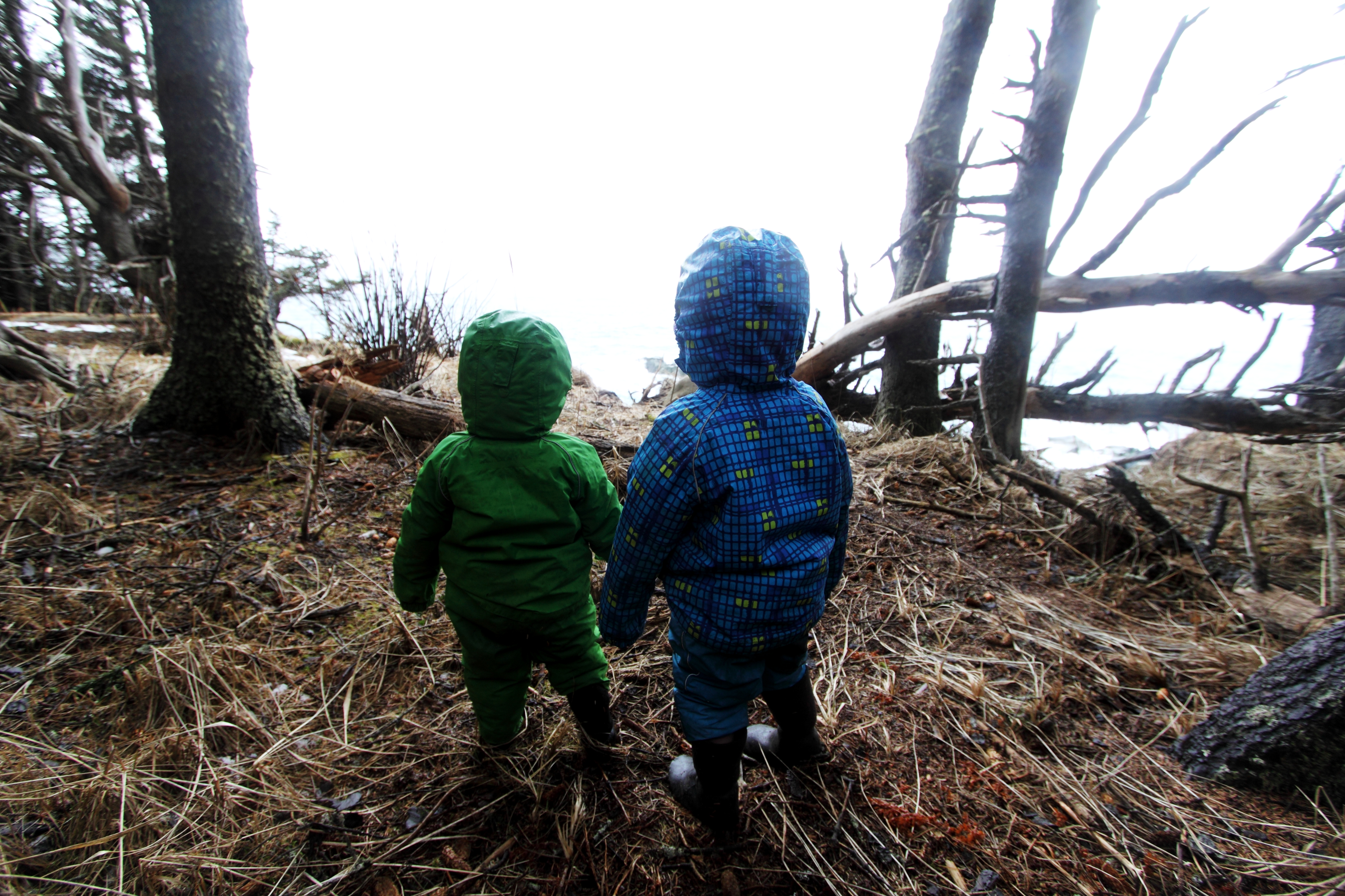 The kids look out at the ocean on one of our many climbs over headlands between Dogfish Bay and Nanwalek.