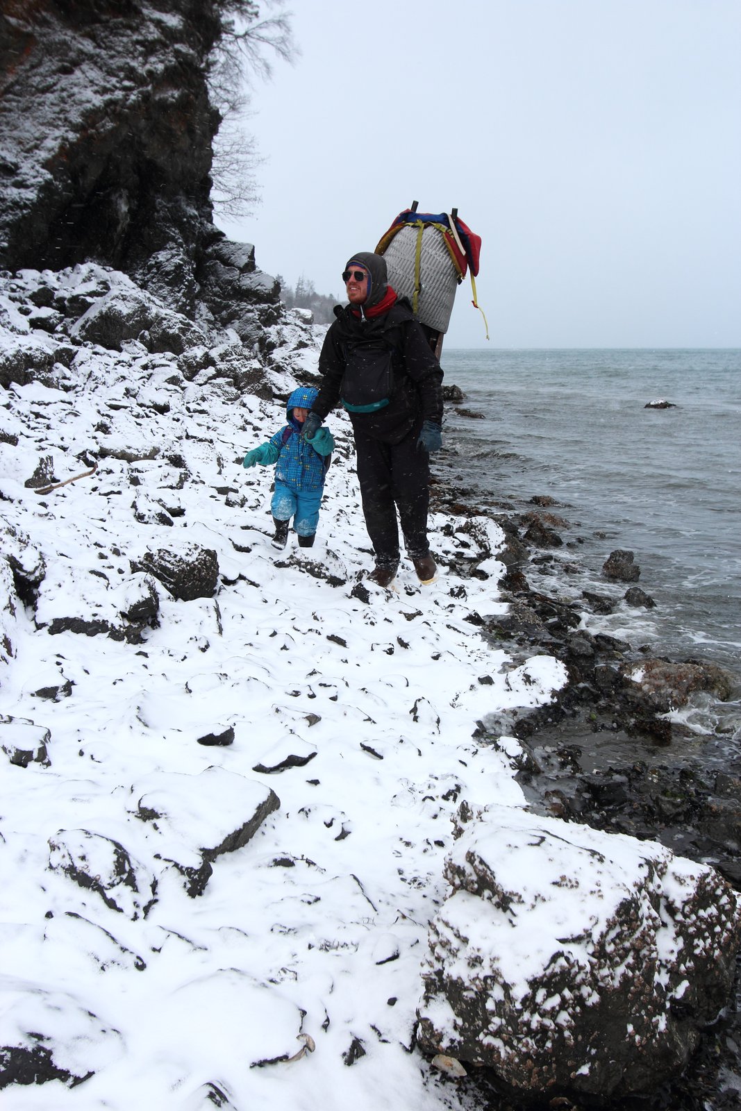 We hurried to pass rocky points before the tide brought cold waves against vertical rock.