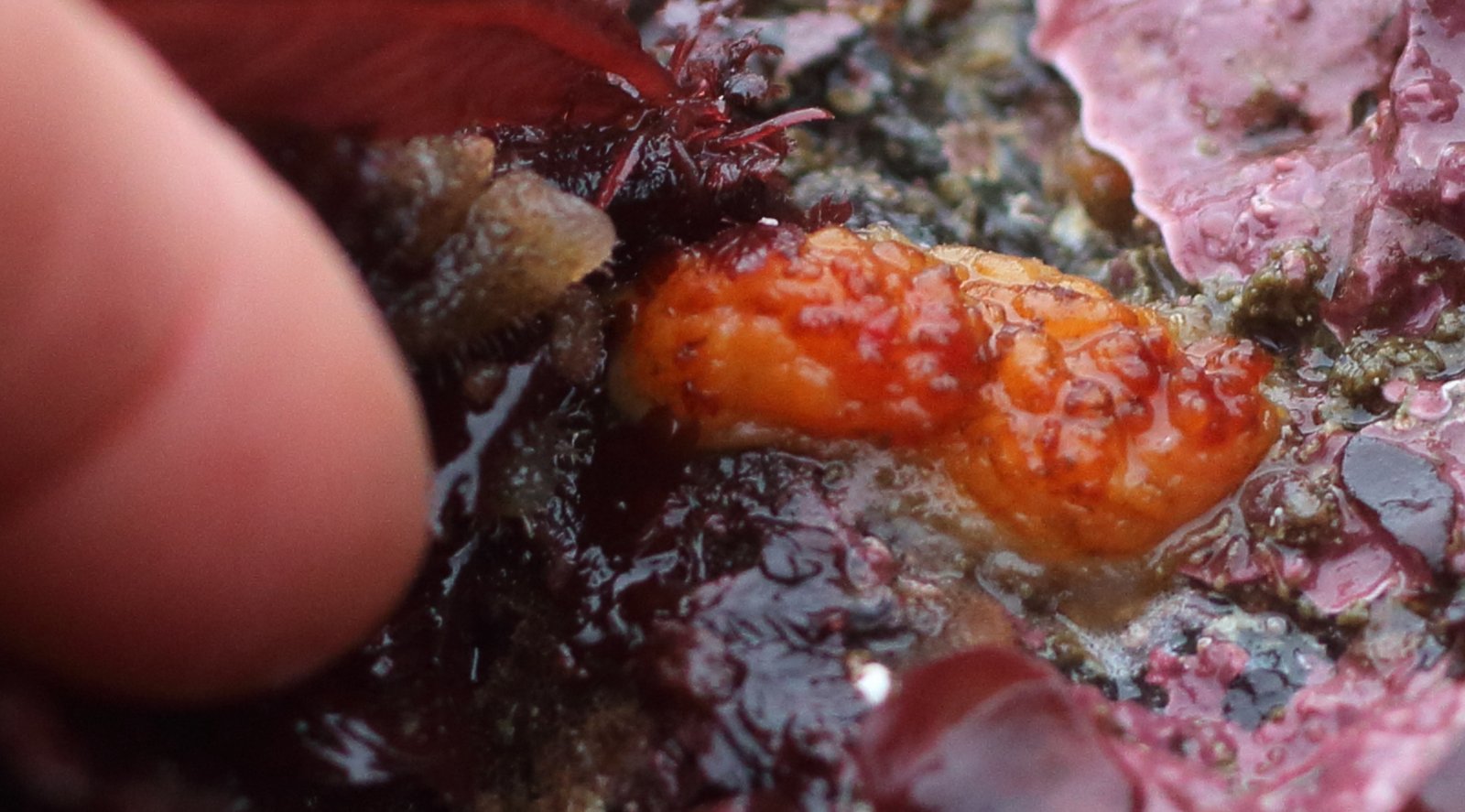 — Habitat: Rocks. Often between barnacles, doesn't mind light exposure. Mid-low intertidal, in exposed and protected areas. Description: Protrudes from the rocks or barnacles. No stalk, base is squat. Body is yellowish-brown, with prominent longitudinal wrinkles. No transverse wrinkles. Often prominent brownish warts on body, especially near siphons. Siphons are red and close together. One of the most common intertidal tunicates. Notes: Someone Catie contacted thought these were Styela gibbsii. They match the photo and description of S. gibbsii here. https://inverts.wallawalla.edu/Chordata_(Urochordata)/Class_Ascidiacea/Stolidobranchia/Styela_gibbsii.html Van Name says S. gibbsii has a narrower attachment than S. truncata, and that S. gibbsii is usually found in deeper water, while his suspicion is that S. truncata was the one that Ritter thought was common on rocks above the water line on Vancouver Island. S. truncata = S. vancouverensis. Neither S. gibbsii or S. truncata look as wrinkled or warty in his drawings as this species. This guide from SE : http://www.naturebob.com/sites/default/files/Aaron%20Baldwin%20Sealife%20of%20SE%20Alaska%2008-15-15.pdf has a species that looks the same as these listed as S. truncata. These pictures of actual sequenced specimens http://www.boldsystems.org/index.php/Taxbrowser_Taxonpage?taxid=198879 look kind of like "warty snout" and kind of like "wrinkled snout" I collected a number of these (see samples 10 and 8 from white rock beach). I know gonads are often distinctive, so they may be good candidates for dissection and/or genetics. You have a pair of photos in the S. truncata folder of a smooth elongated form that looks much more like S. truncata than mine, so I'm guessing. S. gibbsii here.