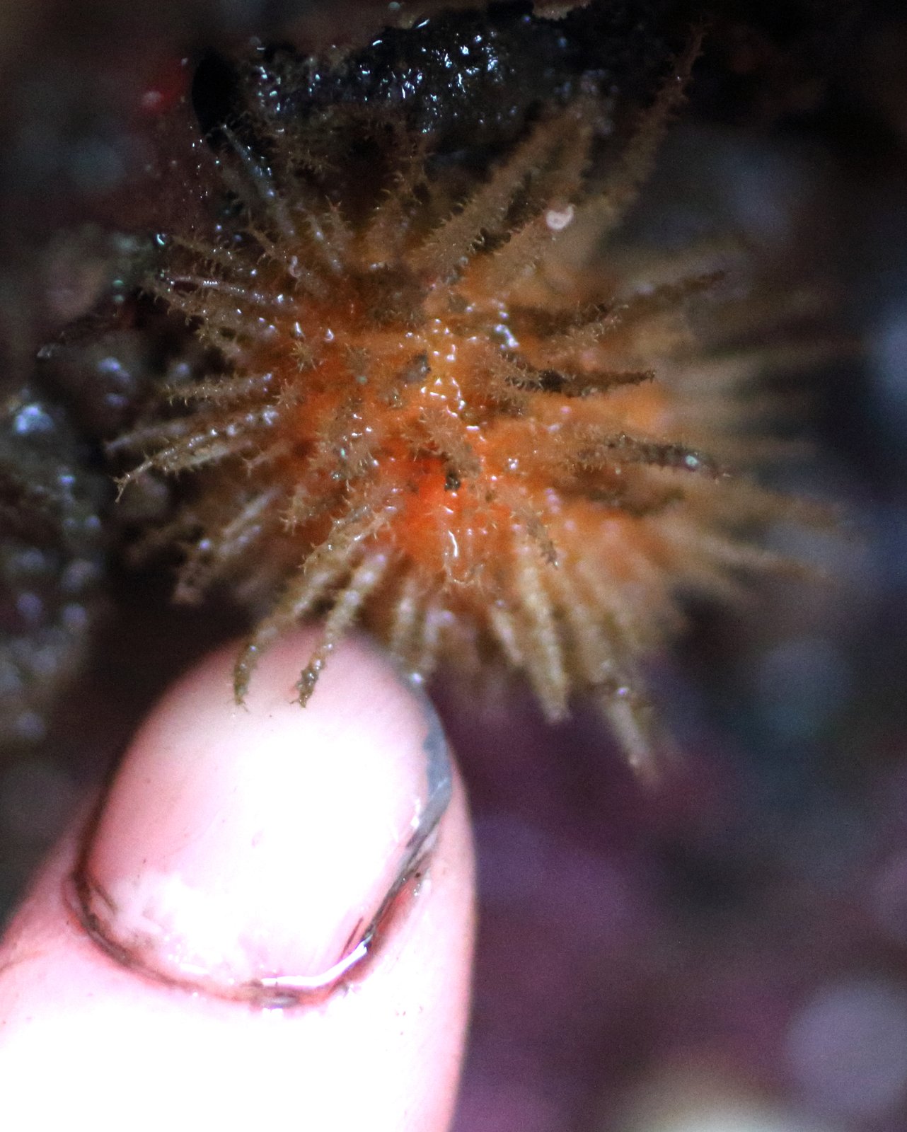 — Habitat: Rocks. Extreme low intertidal under overhangs and cracks, or subtidal. Found on White Rock beach, summer 2016.
