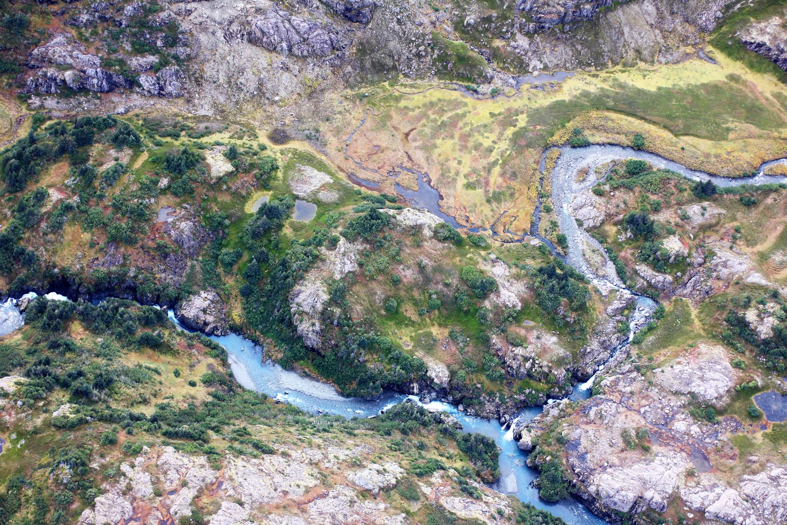— Complex mixed rock, trees, and tundra just beyond the end of the current trail.