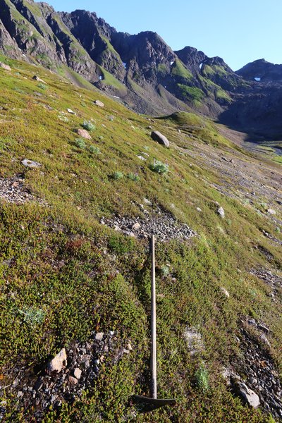 — This section of tundra traverse is affected by frost-heave solifluction processes, which may complicate any solution.