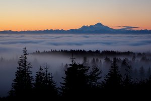— Low fog on Cook Inlet provides an incredible foreground for Iliamna Volcano.